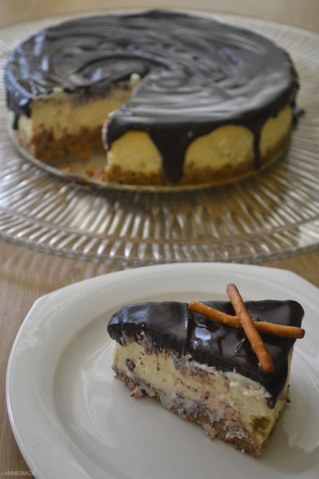 Dark Chocolate Covered Cheesecake with (Gluten-Free) Pretzel Crust
